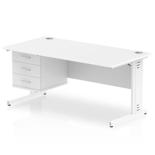 Impulse 1600 x 800mm Straight Desk White Top White Cable Managed Leg 1 x 3 Drawer Fixed Pedestal