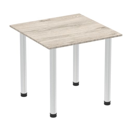Impulse 800mm Square Table Grey Oak Top Brushed Aluminium Post Leg