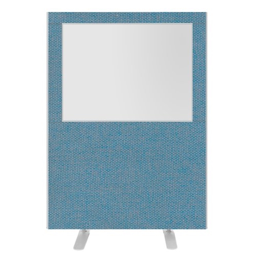 Impulse Plus Clear Half Vision 1500/1200 Floor Free Standing Screen Sky Blue Fabric Light Grey Edges
