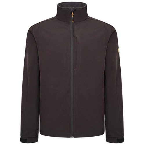 JCB Trade Softshell Jacket L. Shell fabric 92% Polyester. 8% Spandex softshell with poly fleece underneath 320gm. Poly fleece lining. Zipped side pockets. Adjustable Velcro cuffs. Adjustable hem with drawcord. JCB Branding.